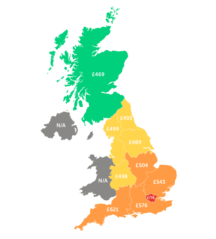 Scotland, in comparison, has a cheaper average of £469 per month.