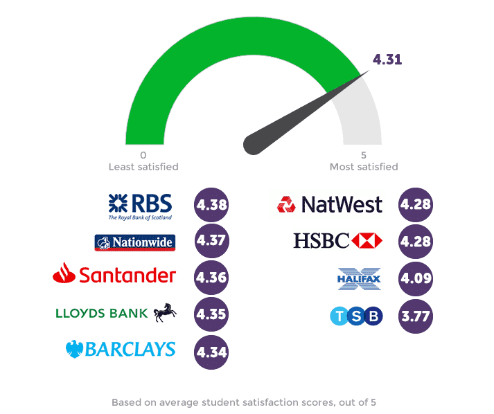 When we asked students to rate their banks, they were on the whole very positive – on average, students gave their bank a rating of 4.31 out of 5.