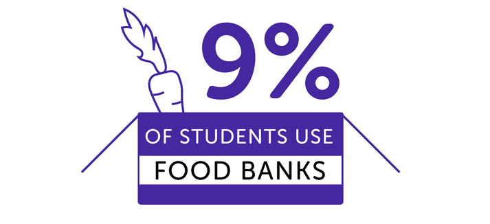 Almost one in 10 (9%) surveyed students told us they had used a food bank in the last academic year. This is still much higher than we'd hoped to see, but it is at least promising that it's down from 18% saying the same last year.